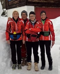Am Freitagmorgen genoss man traditionsgemäss das vielfältige und reichhaltige Frühstücksbuffet im Chemineraum bei Roli und Simone. Gestärkt starteten die Schnelleren direkt ab Camp Richtung Niederwald. Andere bevorzugten die Fahrt mit dem Auto bis nach Ulrichen ins Langlaufzentrum. Sonderlich Freude hatten auch die vier «altersgerecht» bekleideten Frauen (v.l.n.r.) Rita Röthlisberger, Emma Grüter, Ritalina Amrein und Ehrenmitglied Magi Feger an den zwei tollen Langlauftagen. Eine bemerkenswerte Leistung mit hoher Anerkennung erbrachte dabei an beiden Tagen Rita Röthlisberger die mit 81 Jahren auf Klassisch Skiern die Strecke Ulrichen – Geschinen von ca. 6km retour nicht nur ein Mal sondern mehrfach und dazu noch bis zum Sportgeschäft Hallenbarter in Obergesteln lief. Die herrlichen Langlaufverhältnisse motivierte alle Teilnehmer und es war interessant immer wieder eine Flüsslerin oder ein Flüssler auf der Strecke anzutreffen.